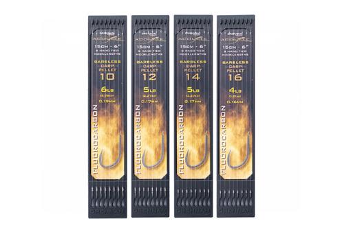 The Barbless Carp Pellet are best used with bigger baits like pellets, corn, meat and bunches of maggots for bagging situations and bigger carp. Size 10 tied to 0.19mm 6lb. Size 12 tied to 0.17mm 5lb. Size 14 tied to 0.17mm 5lb. Size 16 tied to 0.16mm 4lb. The unique hook plate system keeps hooklengths perfectly straight and ready to use, these are fully compatible with the Drennan Hook Book and Hook Box for the ultimate storage solution.