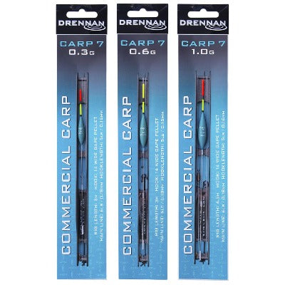 Carp 7 Floats have highly visible 1.5mm diameter tips that support a wide range of baits. Their streamlined bodies combined with a long stainless steel wire stem makes them behave perfectly and be exceptionally stable. On all three float sizes these rigs are completed in a size 14 Barbless Wide