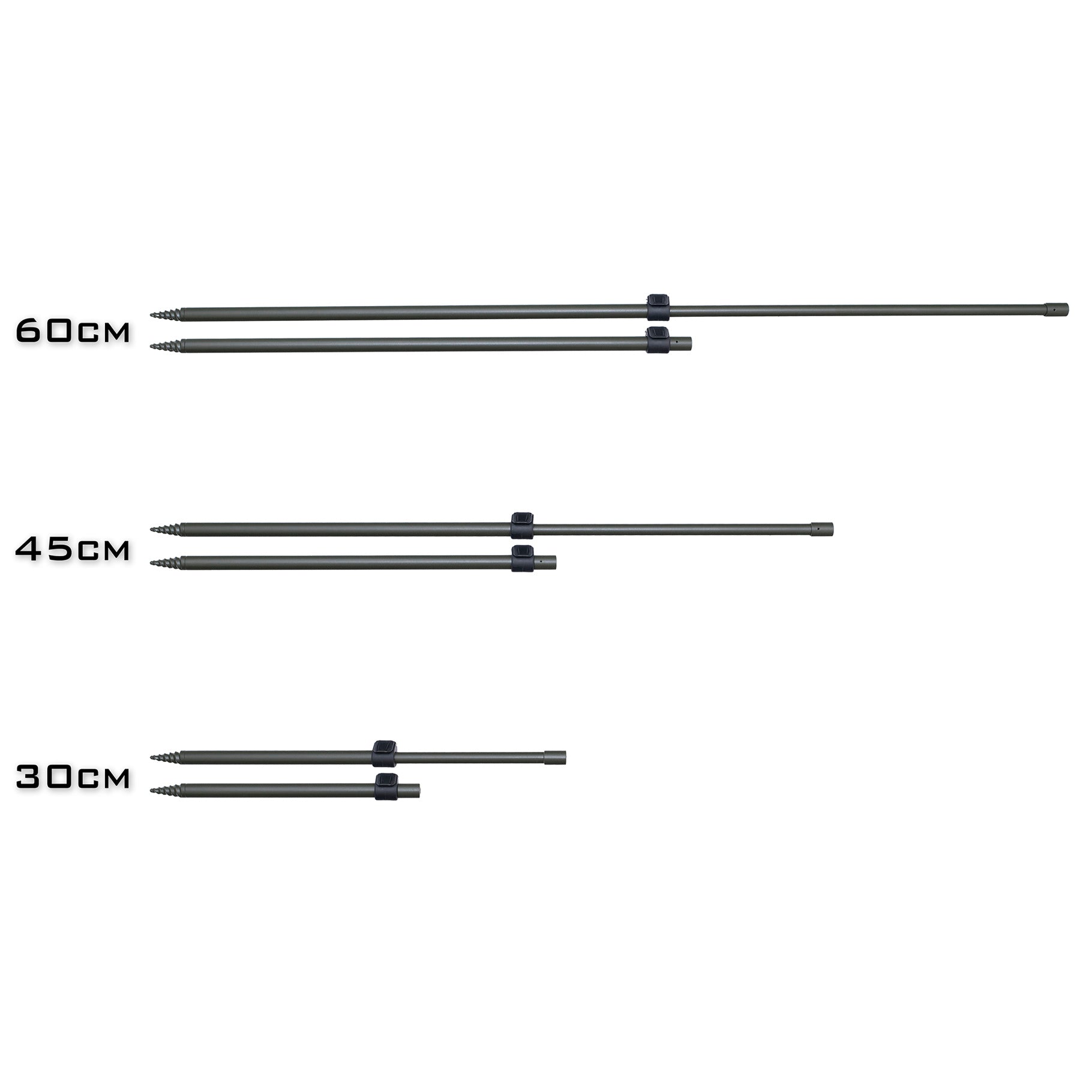 A vital piece of equipment for any angler, these lightweight adjustable bank sticks feature a durable matt green finish, spiral point and secure cam-lock.
