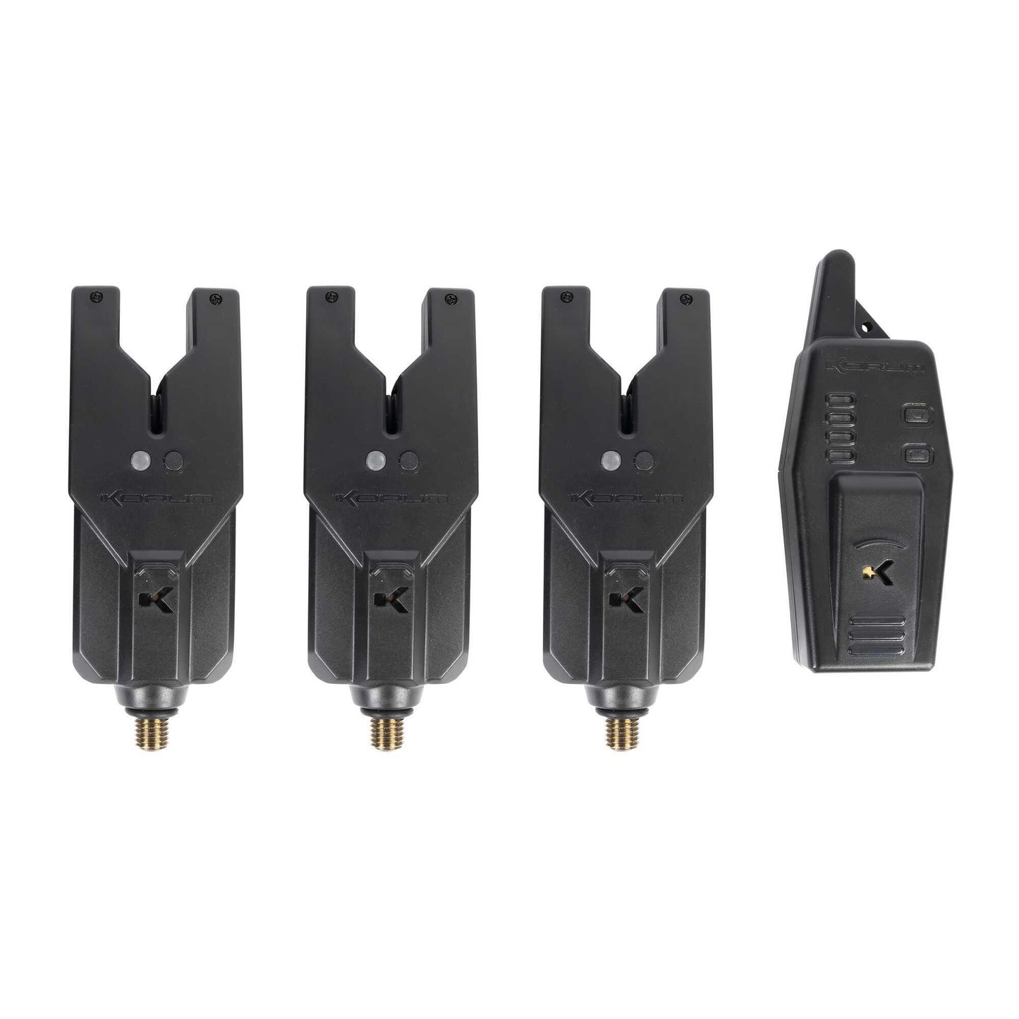 The KRI alarm presentation set contains three alarms and a wireless bite alarm receiver. The KRI alarms feature integral Snag Ears, that can be adjusted whilst fishing and during transit. The KRI is compact, rugged and reliable. Featuring a sensitive hidden roller wheel and a bright LED, it’s a fantastic choice for all forms of specimen angling. The speaker features adjustable volume, while the LED boasts a 10 second alert feature. The receiver boasts a long wireless range, on/off switch and volume control. When used in conjunction with the alarm heads, it’s a top-quality combination that’s not going to let you down. Up to 100m transmission range. Alarm requires a 9V battery for longer useable lifespan. Receiver uses 3 x AAA battery.