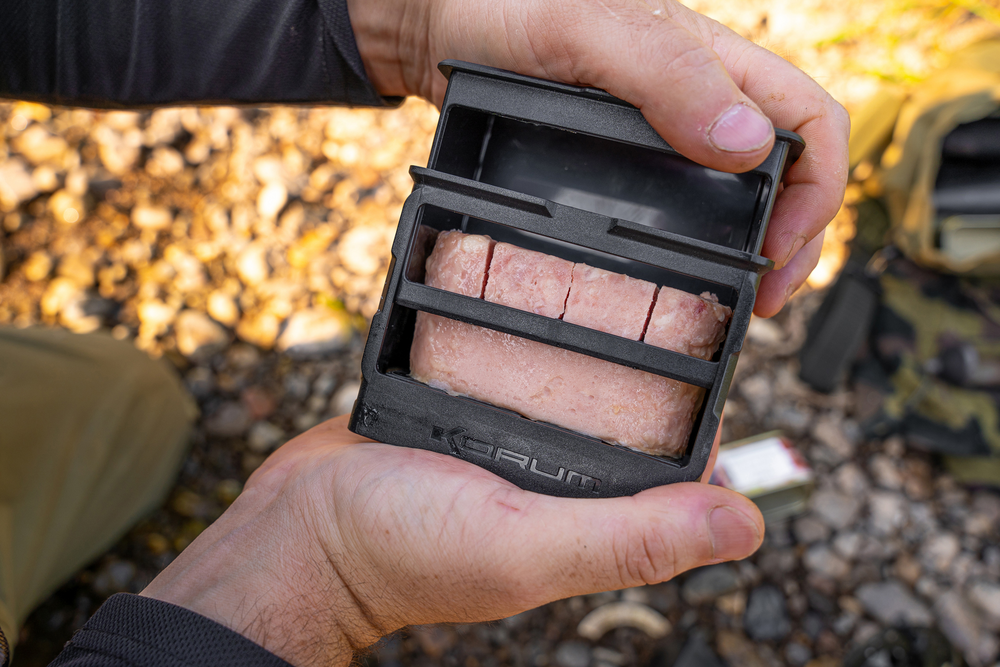 The Meat Cuber offers a simple, compact solution for cutting luncheon meat to the perfect size. The two-part process cuts perfectly neat cubes that match the size of the Korum Meat Stoppas perfectly.