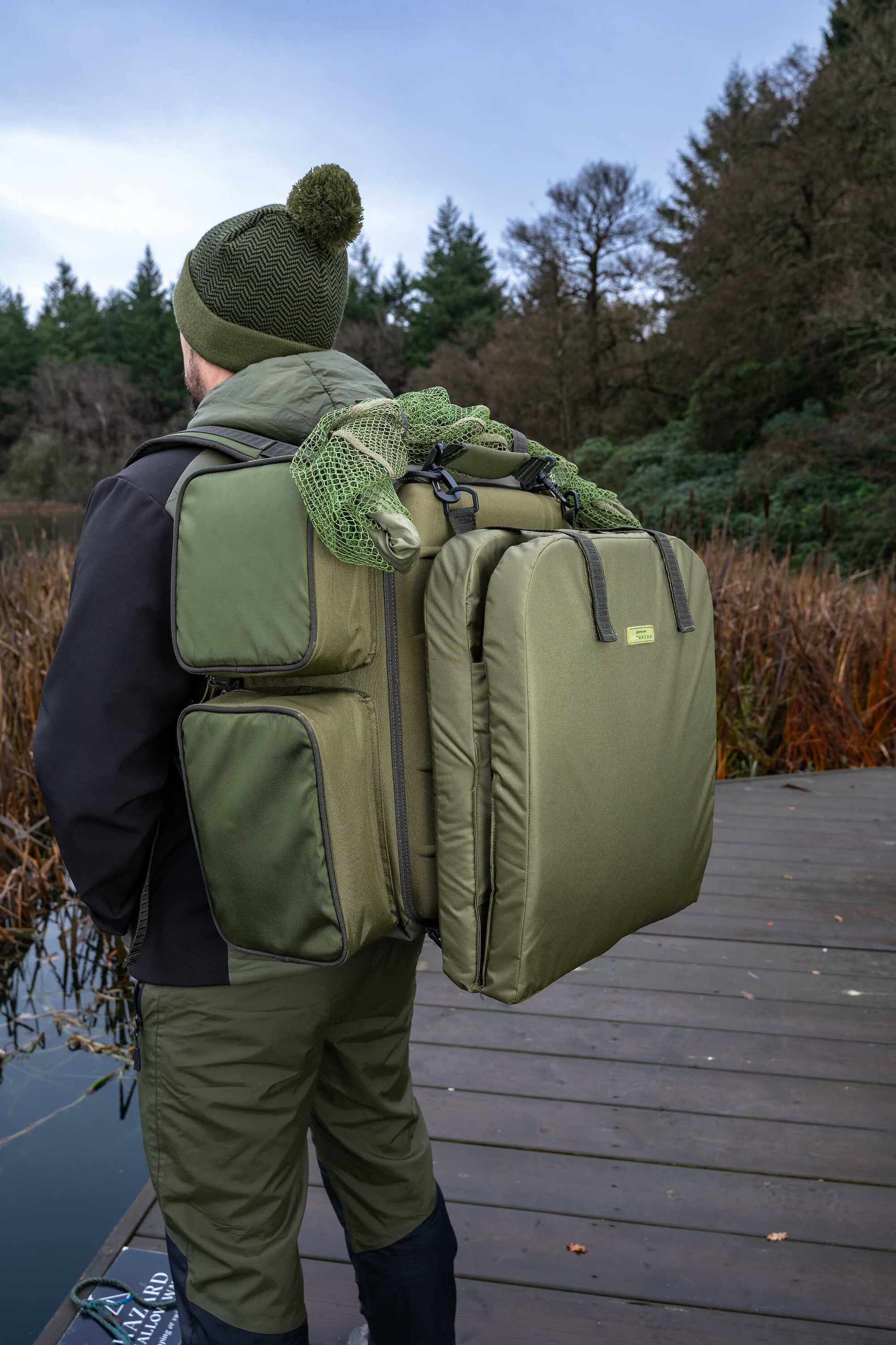 This larger version of our iconic Ruckbag offers massive capacity in a comfortable, portable layout. Our renowned chair carrying hook design remains, but is now adjustable to fit more sizes of a chair. Carry your chair and bag as one with ease. Side pockets are strategically sized and placed for maximum useability, whilst a taller main compartment provides plenty of room for your Tackle Blox and other essential items. Now with longer webbing straps on the top of the bag for carrying nets/banksticks. Extremely-well padded shoulder straps are adjustable and feature a chest strap for security.