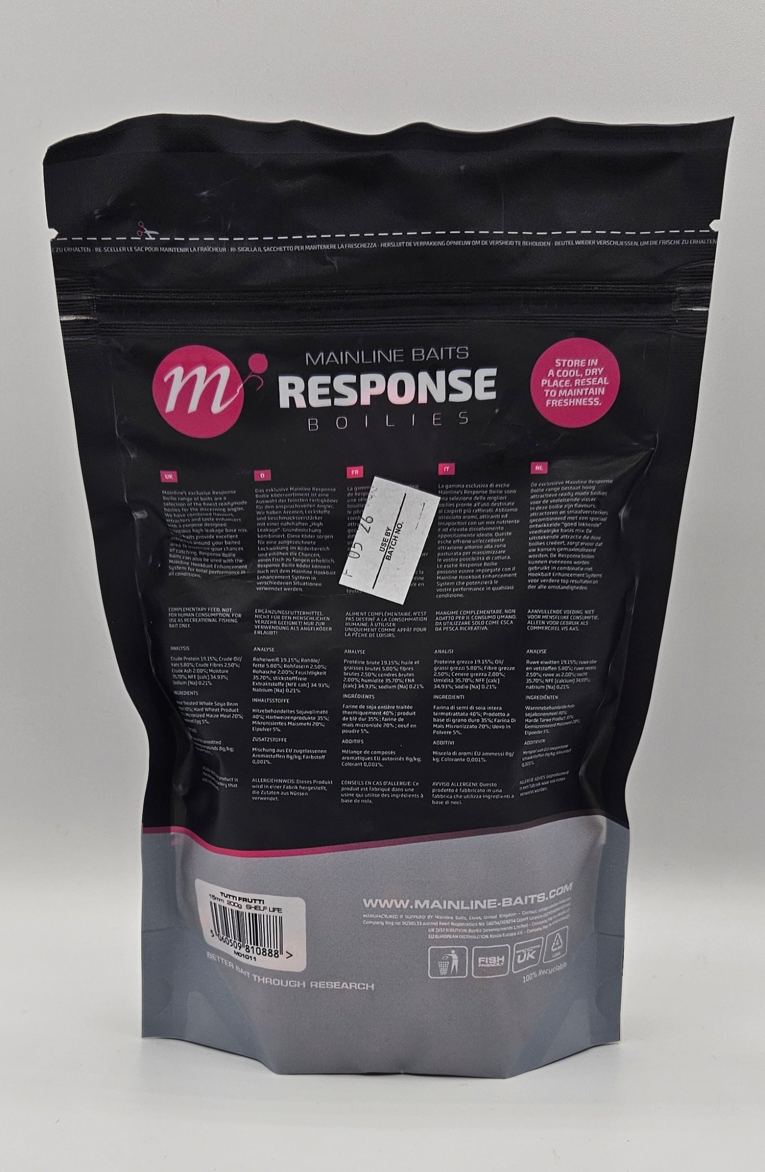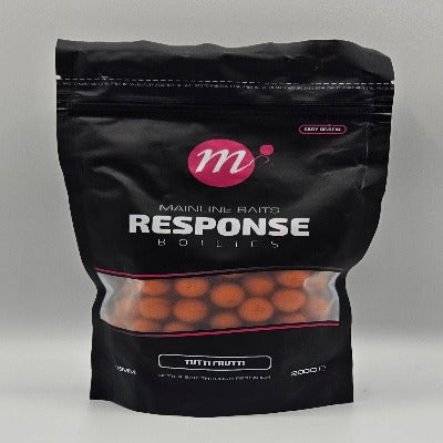 Mainline Response Boilies, Specially for anglers who do not have time to roll their own boilies, or for one-off visits to venues where there is no possibility of establishing a food source, the Mainline Total Response bait are proven winners. Using the finest quality human food grade ingredients Mainline have formulated a new generation of readymade baits which begin to work as soon as they enter the water. A high leakage base allows the flavours and attractors to leak quickly from the bait due to its porosity and texture.