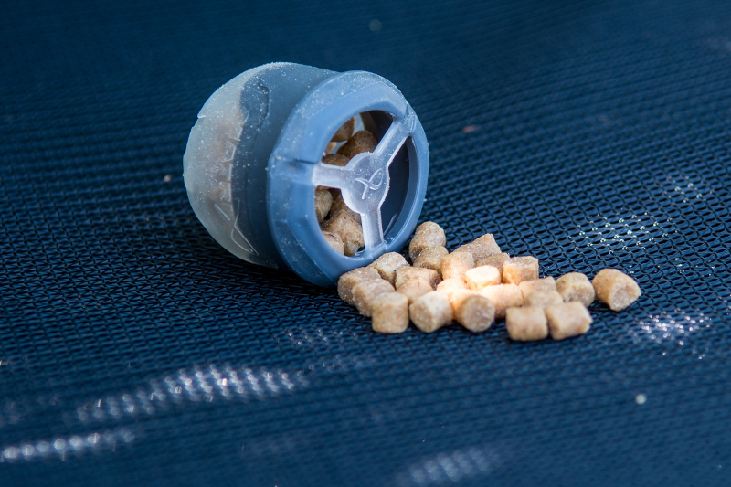 Matrix Flexible Toss Pots, redesigned with the help of match consultant Jamie Hughes. They come with two lid options, both offering different choices for feeding. The containers themselves are perforated with micro holes in the base so you can dunk your loose feed before you drop it for even more accuracy.