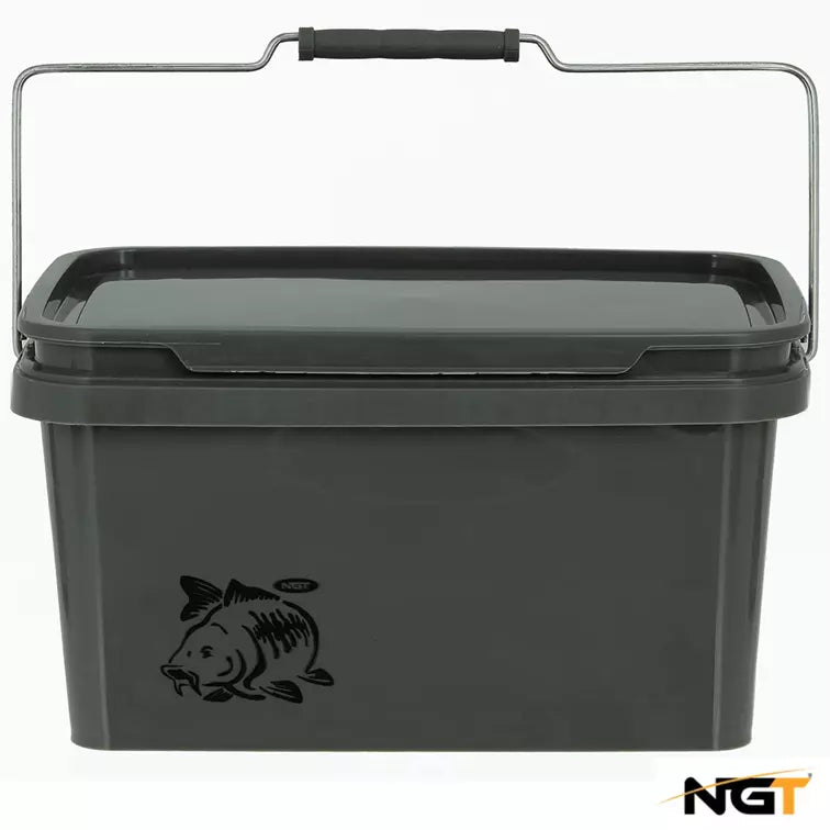 This 5-litre green rectangular bucket is perfect for storing all types of fishing bait. It features an airtight lid with four secure locking sides, ensuring a reliable seal to keep contents fresh. The sturdy metal handle is equipped with a polymer grip, making it comfortable to hold and easy to carry.