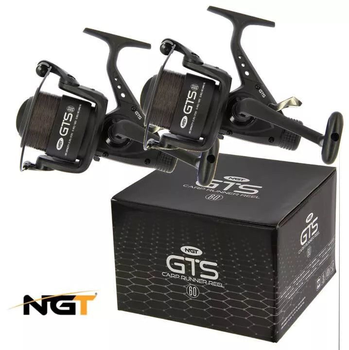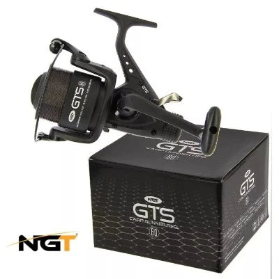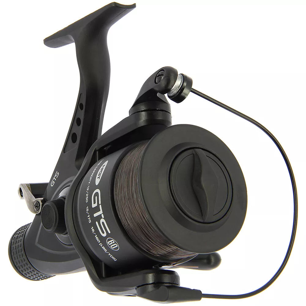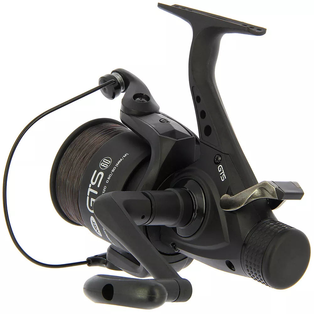 A 2+1BB matt black carp runner reel, spooled with 15lb line.