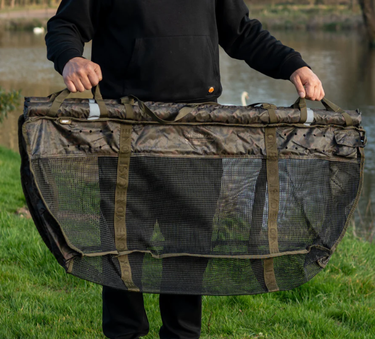 As anglers we're the responsible party when we take the fish out of their home to herald on the scales, therefore OMC have left no stone unturned in the development of the PB Sling; which of course features the signature Splash Camo, but far more importantly the design has evolved around the use of a MARINE GRADE soft touch rubber mesh to deliver more comfort and calm for the fish during periods of being weighed or retained. This PREMIUM Soft Touch Mesh Material dramatically reduces the chance of damage to fins and of the Carps outer protective slime. Full Foam covered bars with Night Reflective Fabric Accents to allow vigilant anglers to monitor the fish during SHORT periods of retention.