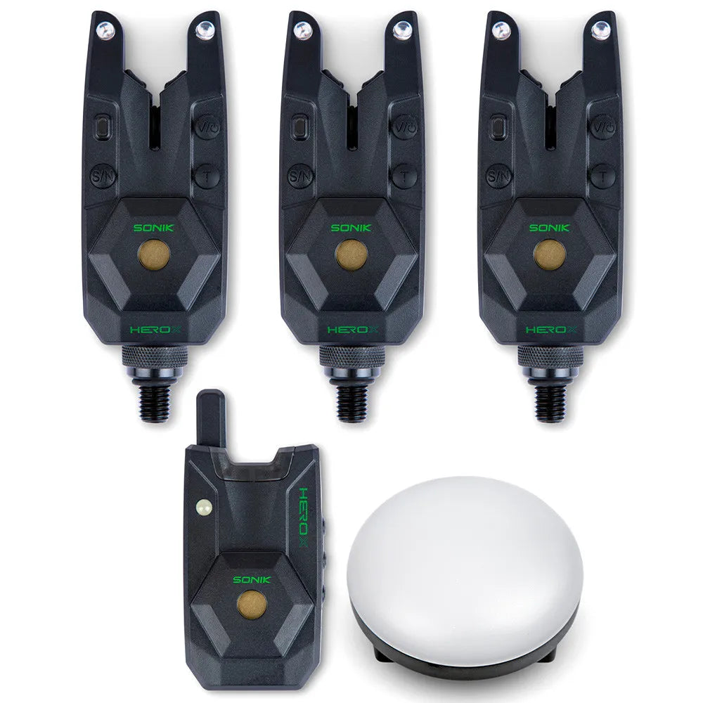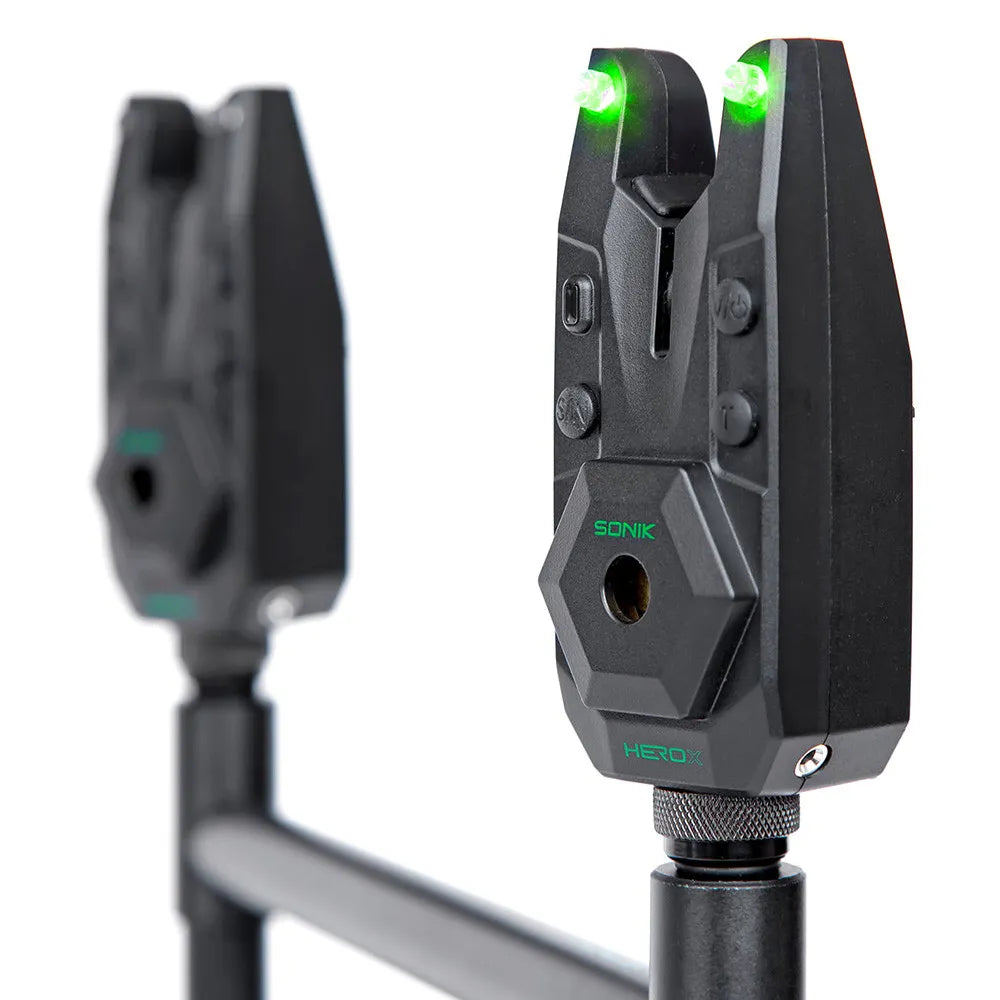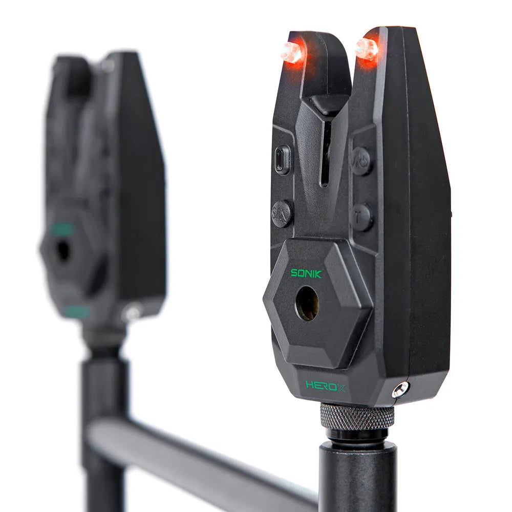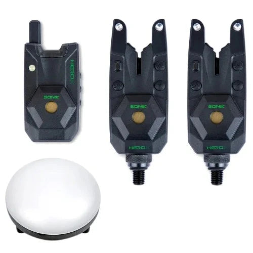 The Sonik Herox Bite Alarm Set + Bivvy Lamp offers something never before seen at this price point, with several features packed into these bite alarms that are normally only found on bite alarms at a much higher price point. These Sonik Herox Bite Alarms combine the latest technology with user friendly features to ensure you never miss a bite. Upgrade your bite indication today with the Sonik Herox Bite Alarms System.